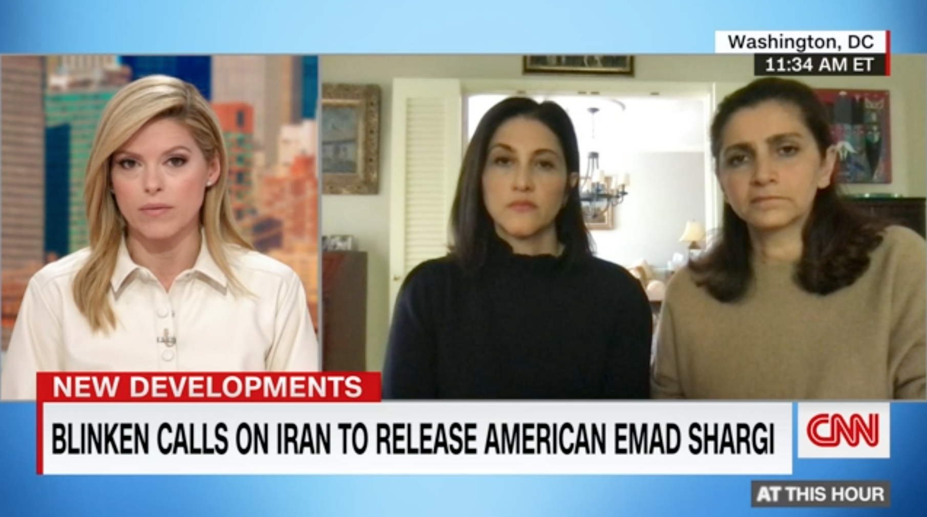 "Like too many other families, their loved one has been treated as a political pawn," the top U.S. diplomat said in a post on Twitter. "We call on Iran to stop this inhumane practice and release Emad."
